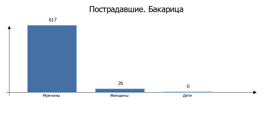Структура пострадавших. Официальные отчёты. В разрезе пола/возраста. Официальные отчёты по Бакарице не содержат указания на пострадавших детей. Зато они прослеживаются в лазаретных карточках. Обычно на каждого ребёнка заводилась отдельная карточка, а в лазаретной карточке матери прописывались номера карточек её детей.