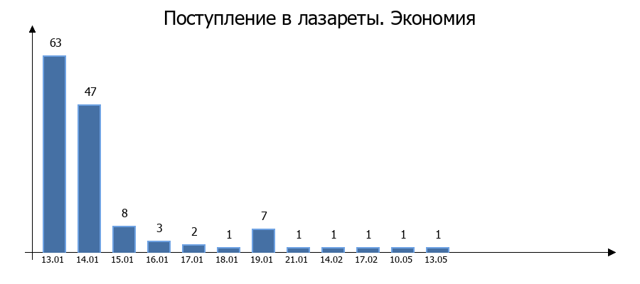 Экономия. На диаграмме показано распределение пострадавших по лазаретам. Данные из официальных отчётов.