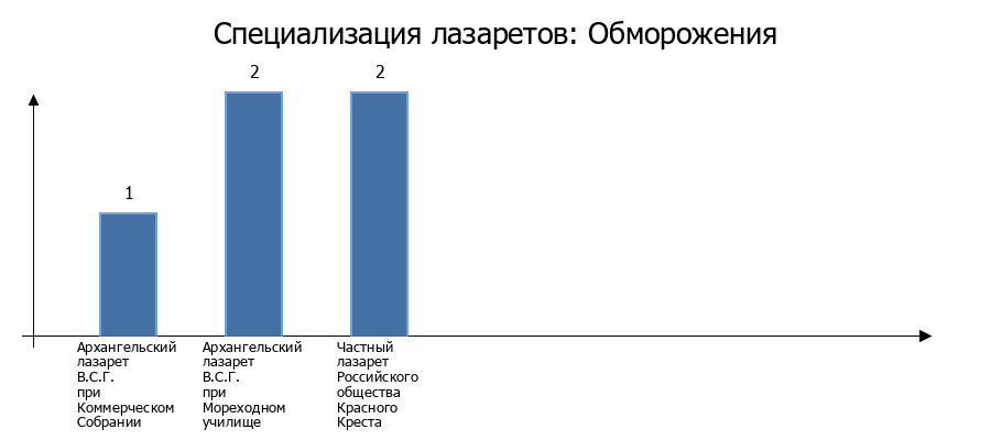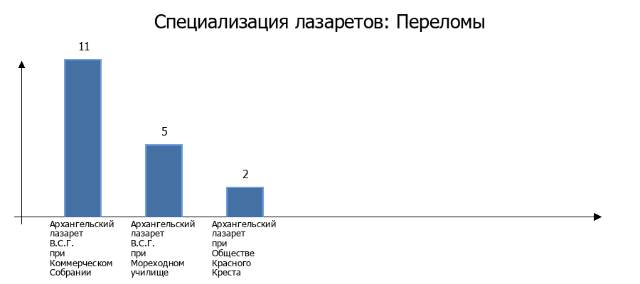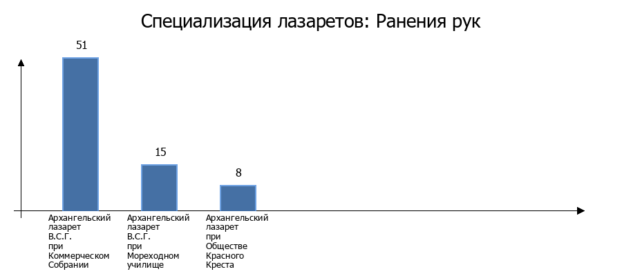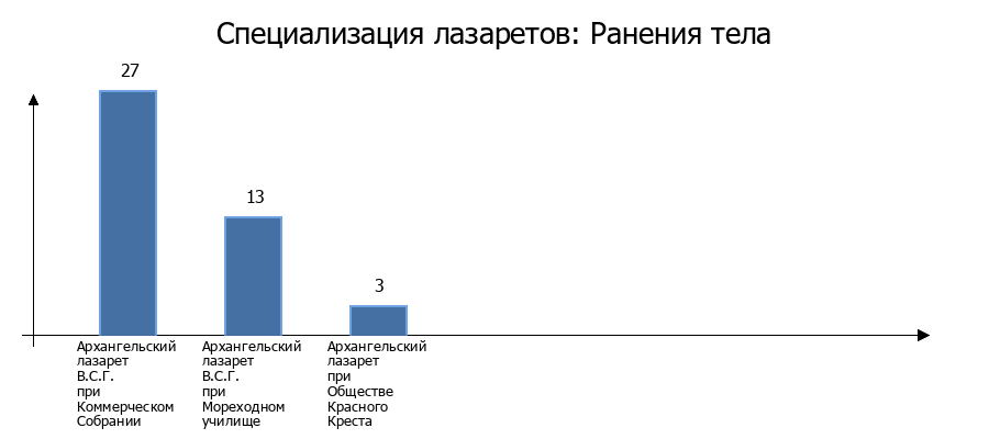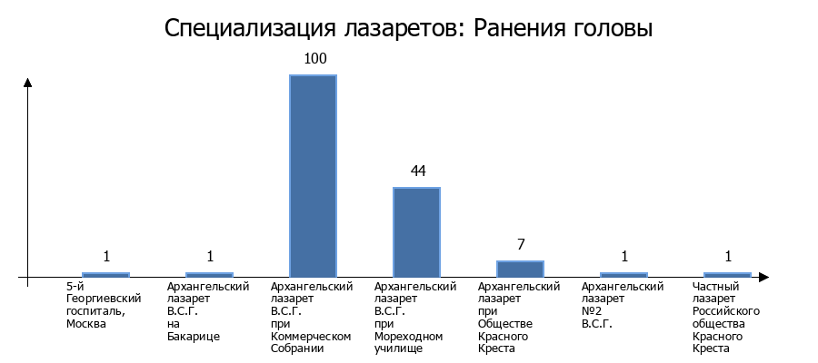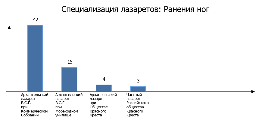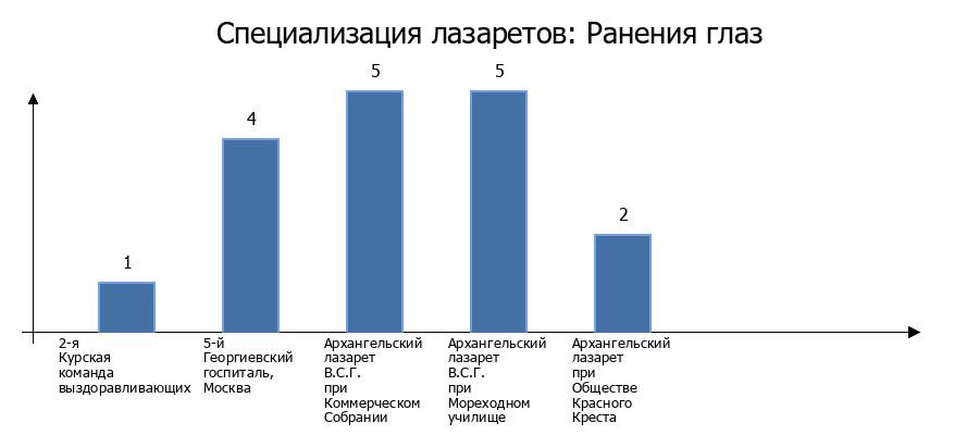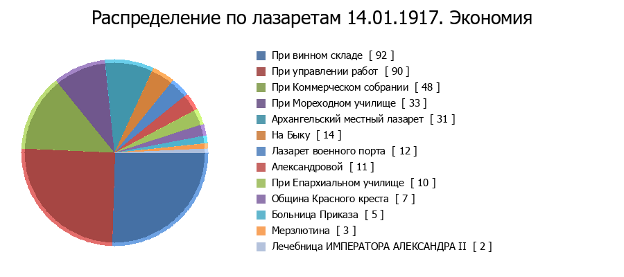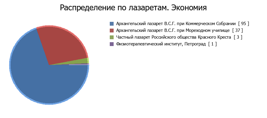 Экономия. На диаграмме показано распределение пострадавших по лазаретам за весь период. Данные неполные, составлены по лазаретным карточкам.